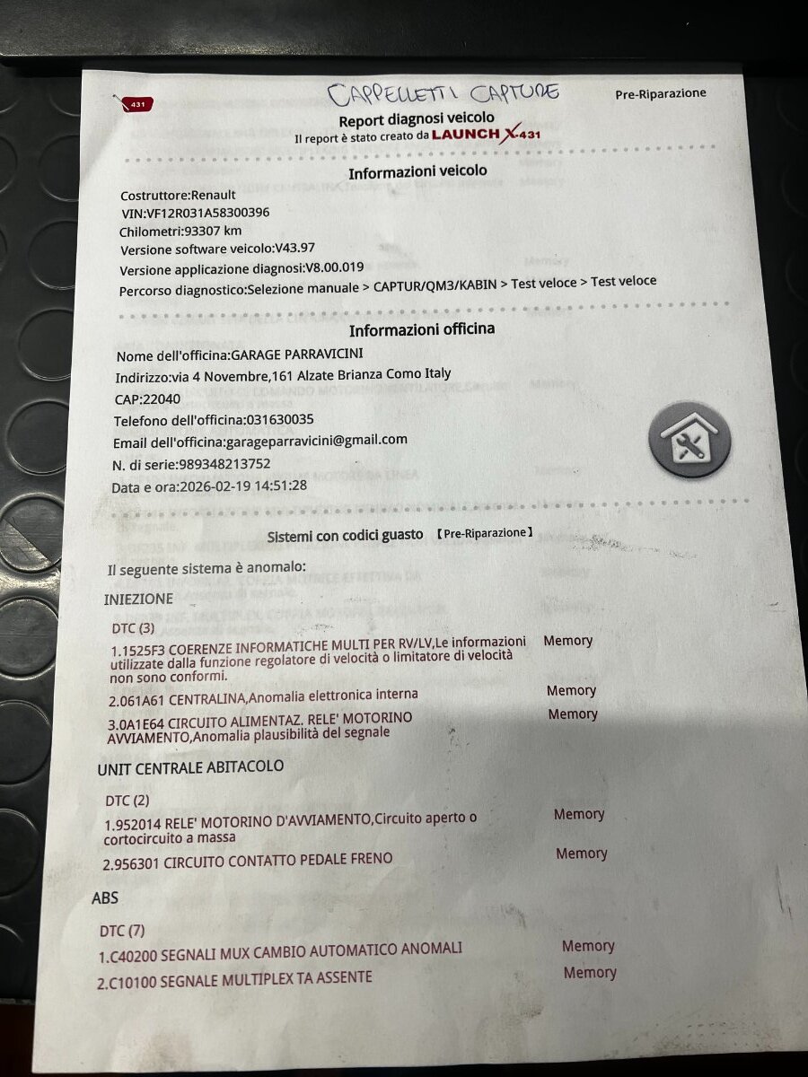 [Renault Capture 07/2017 1197cc H5FG4 87Kw Benzina] Spie varie salturarie.. allego foto diagnosi