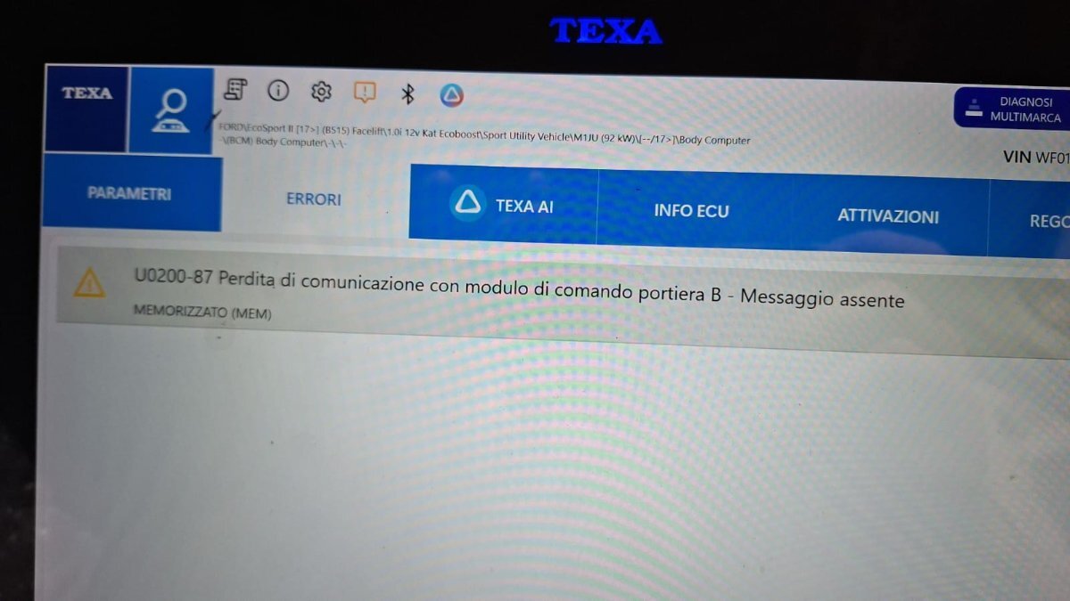 [FORD ECOSPORT 05/2019 1000cc M1JU 92Kw Benzina] MODULO PORTA PASSEGGERO NON FUNZIONA U0200-87